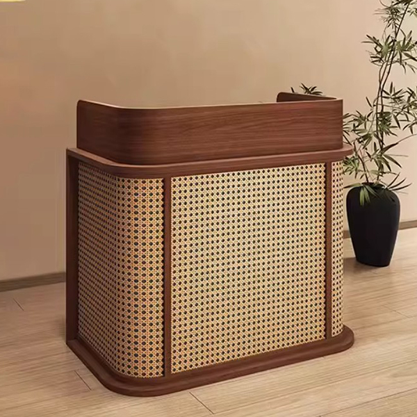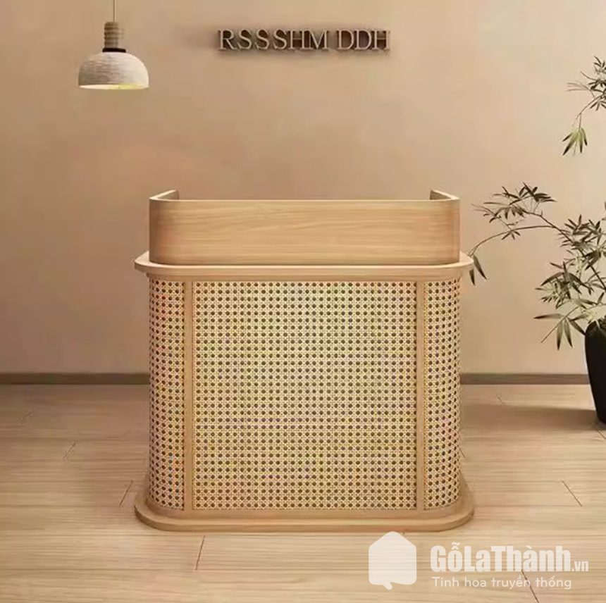 Quầy lễ tân phong cách vintage GHT-4664 mang đến vẻ đẹp độc đáo khi kết hợp hài hòa giữa phong cách hiện đại và chi tiết lưới mây tinh tế. Thiết kế nổi bật với điểm nhấn trang trí nhẹ nhàng, tạo cảm giác gần gũi nhưng vẫn góp phần định hình phong cách riêng, giúp không gian trở nên ấn tượng và thu hút hơn ngay từ cái nhìn đầu tiên.