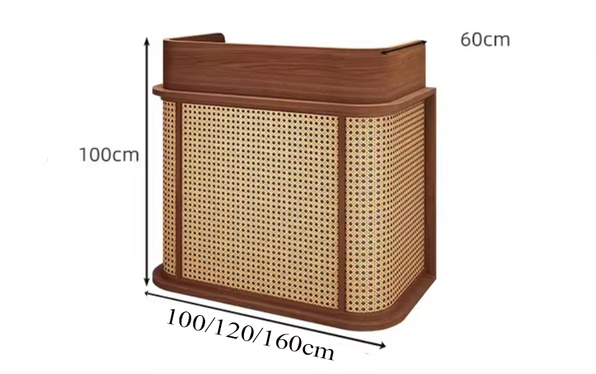Quầy lễ tân phong cách vintage GHT-4664 là sự lựa chọn hoàn hảo cho những không gian muốn tạo dấu ấn riêng ngay từ khu vực đón tiếp. Sự kết hợp hài hòa giữa nét đẹp vintage, chi tiết lưới mây truyền thống và thiết kế hiện đại giúp sản phẩm vừa tinh tế vừa khác biệt. Ngoài ra chúng tôi còn cung cấp mẫu quầy thu ngân kết hợp bục ngồi cho khách phù hợp với ngành hàng thời gian. Không chỉ đáp ứng tốt công năng sử dụng, mẫu quầy còn góp phần nâng tầm thẩm mỹ, mang đến hình ảnh chuyên nghiệp và cuốn hút cho toàn bộ không gian.