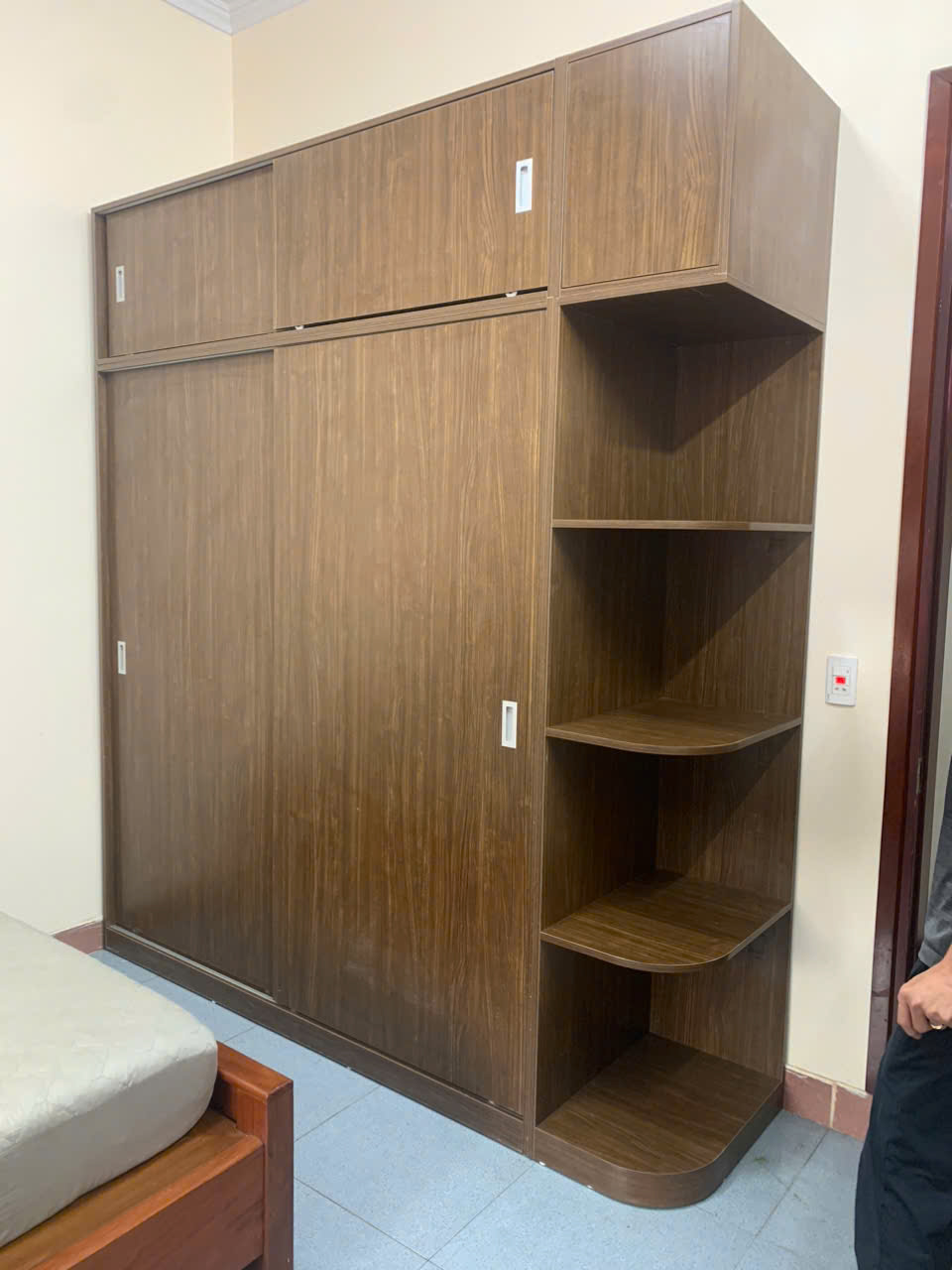 Tủ áo được chăm chút tỉ mỉ đến từng chi tiết, từ chất liệu gỗ cao cấp cho đến các đường nét thiết kế sắc sảo. Mỗi cánh cửa lùa đều được gia công chính xác, tạo nên sự mượt mà khi đóng mở. Tủ đỉnh và kệ trang trí được kết hợp hài hòa, không chỉ giúp tối ưu diện tích mà còn làm nổi bật vẻ đẹp thanh lịch, tinh tế của không gian sống. Với sự hoàn hảo trong từng chi tiết, tủ áo này không chỉ là sản phẩm nội thất mà còn là một tác phẩm nghệ thuật, mang lại sự sang trọng và tiện ích cho ngôi nhà của bạn.