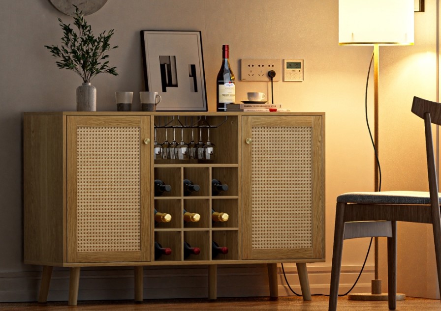 Mẫu tủ rượu nhỏ gọn gỗ công nghiệp là lựa chọn hoàn hảo cho những ai yêu thích sự tinh tế và độc đáo trong không gian sống. Thiết kế kết hợp giữa chất liệu gỗ công nghiệp bền chắc cùng cánh mây thanh thoát, sản phẩm mang lại cảm giác gần gũi mà vẫn sang trọng. Đây không chỉ là nơi lưu trữ và trưng bày rượu, mà còn là điểm nhấn thẩm mỹ đầy cuốn hút cho phòng khách hay quầy bar gia đình.