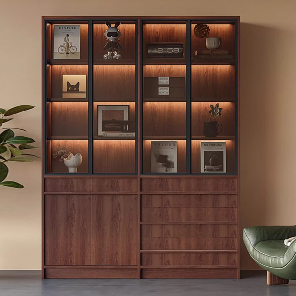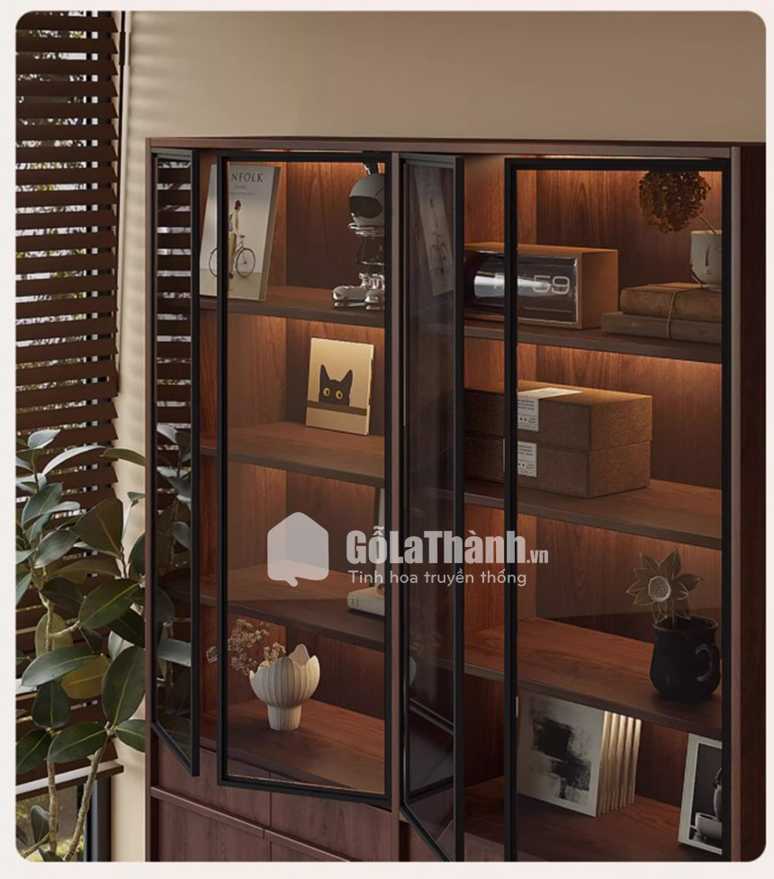 Cánh kính khung nhôm sang trọng của tủ trang trí GHT-5316 tạo nên vẻ ngoài tinh tế và đẳng cấp cho không gian sống. Kính trong giúp tôn lên vẻ đẹp của các món đồ trưng bày, đồng thời khung nhôm cao cấp mang lại sự chắc chắn và bền bỉ theo thời gian. Sự kết hợp hài hòa này khiến sản phẩm trở thành điểm nhấn nổi bật trong phòng khách hoặc không gian nội thất hiện đại.